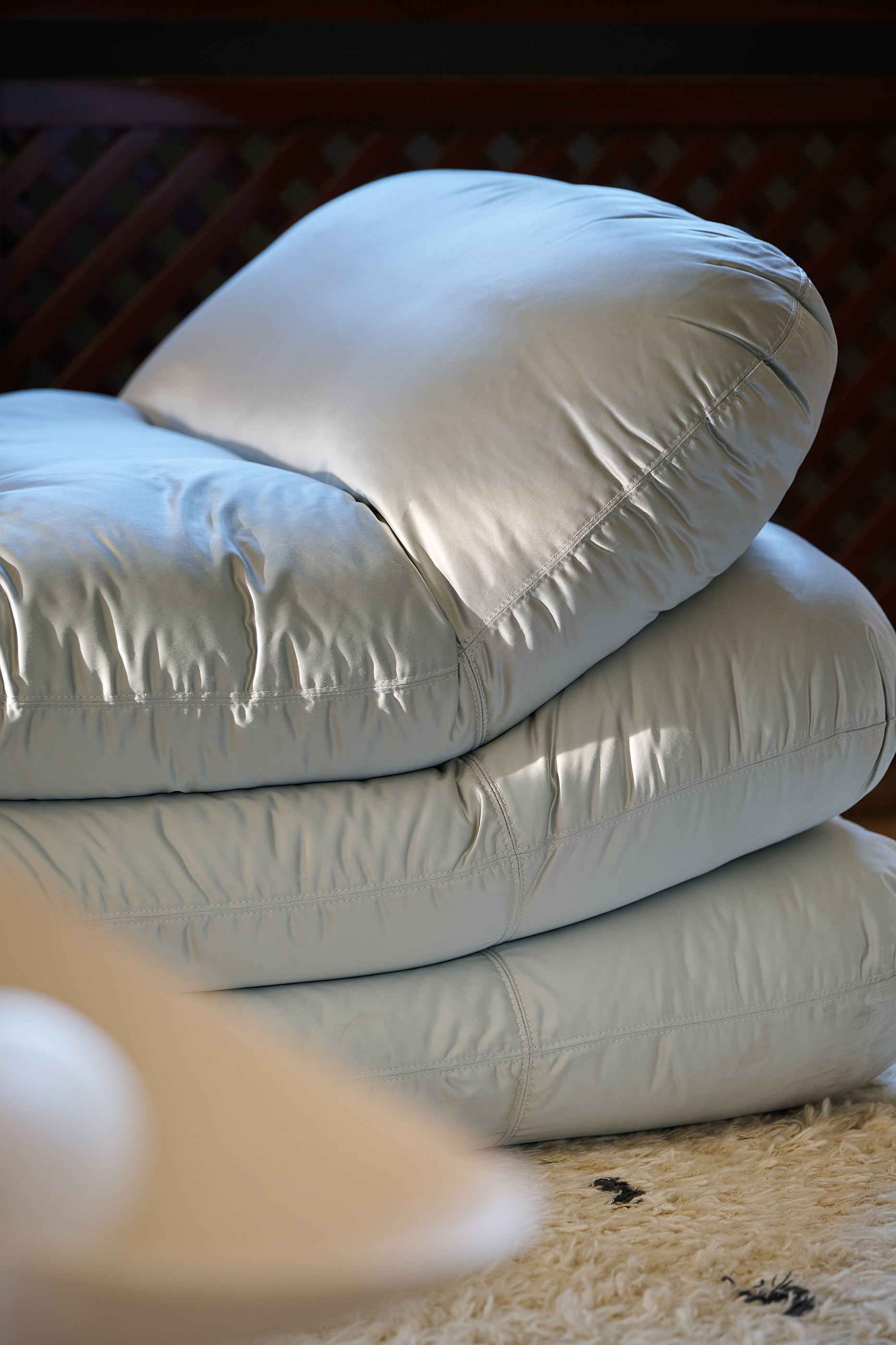 Solar is the centrepiece of the Cosmic collection created with Faye Toogood. Comfortable and sophisticated, the sofa embodies the informal elegance of Toogood’s studio, standing out among Tacchini’s timeless furnishings as a manifesto of contemporary style. The fabric intentionally crinkles, giving the quilted cushions an even softer texture. With her unmistakable blend of style and ingenuity, Faye Toogood invites one to relax and savour its soft tactility.