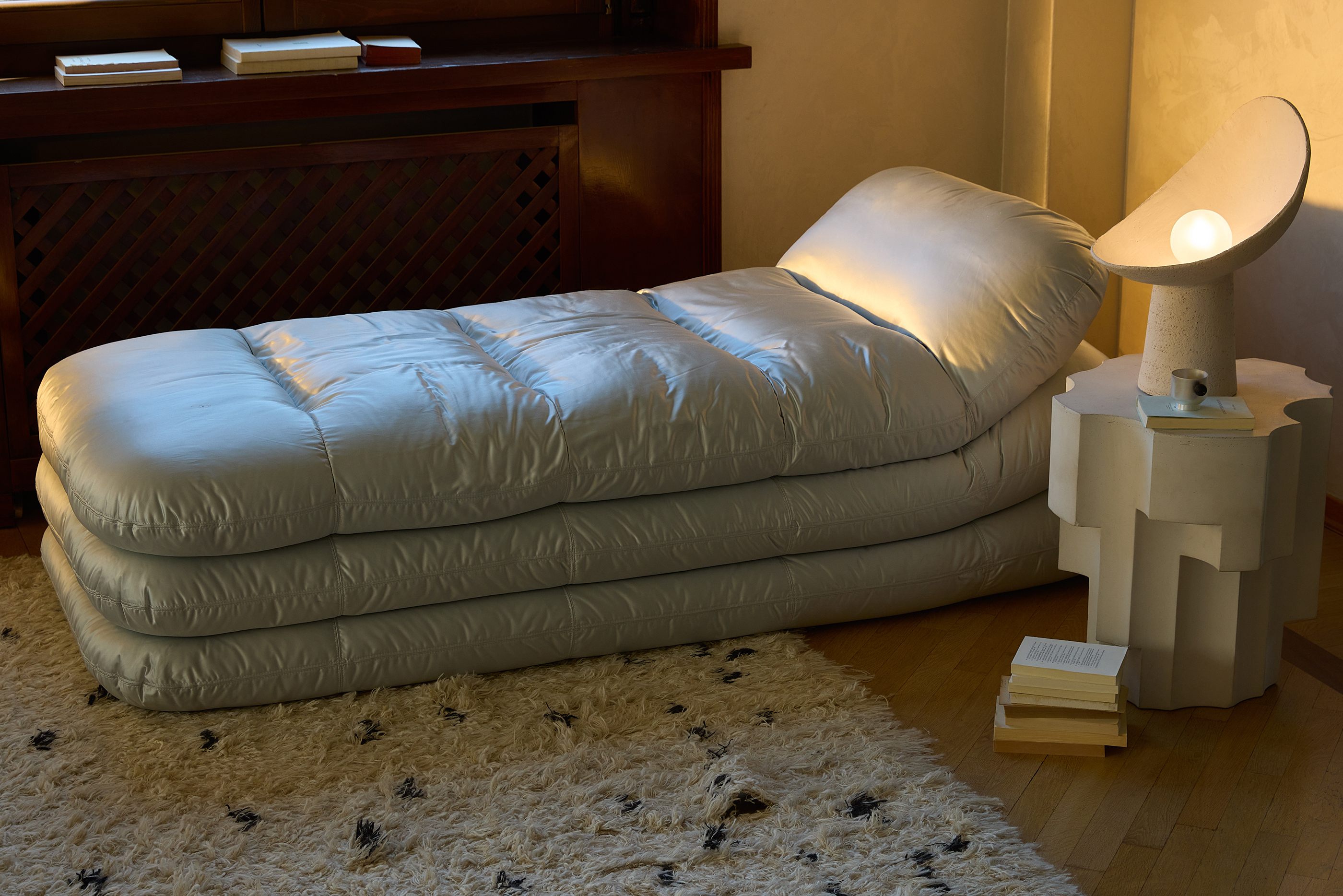 Solar is a comfortable, padded daybed that almost resembles a stack of cushions: in reality, between sculptural shapes and softness, it offers a new interpretation of Tacchini’s iconic padding.
