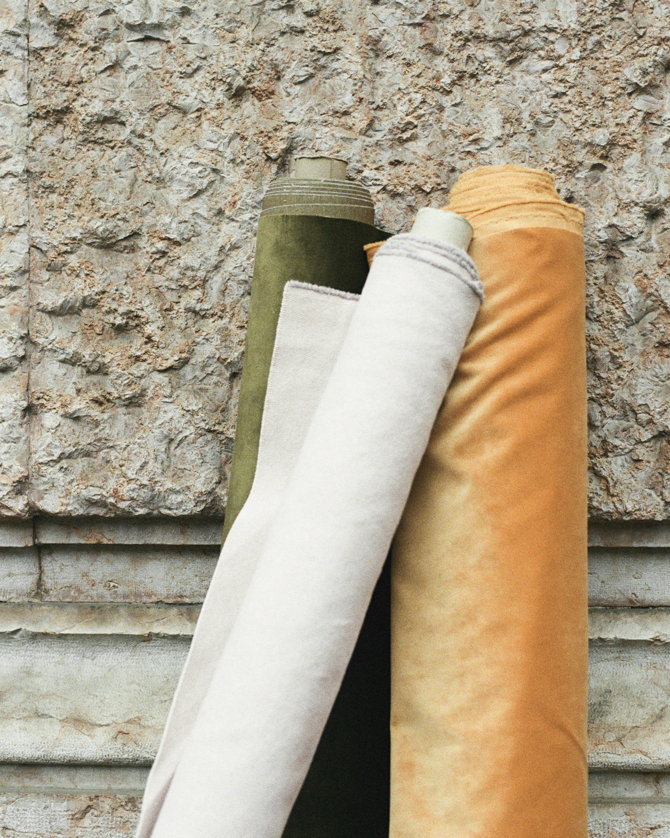 Material remains at the core: natural linens and cottons, wools, velvets and leathers, all selected with meticulous care. Organic yarns and botanical dyes — as in the artisan-crafted linens pigmented with natural extracts — enhance subtle irregularities and reveal unique chromatic depth.
