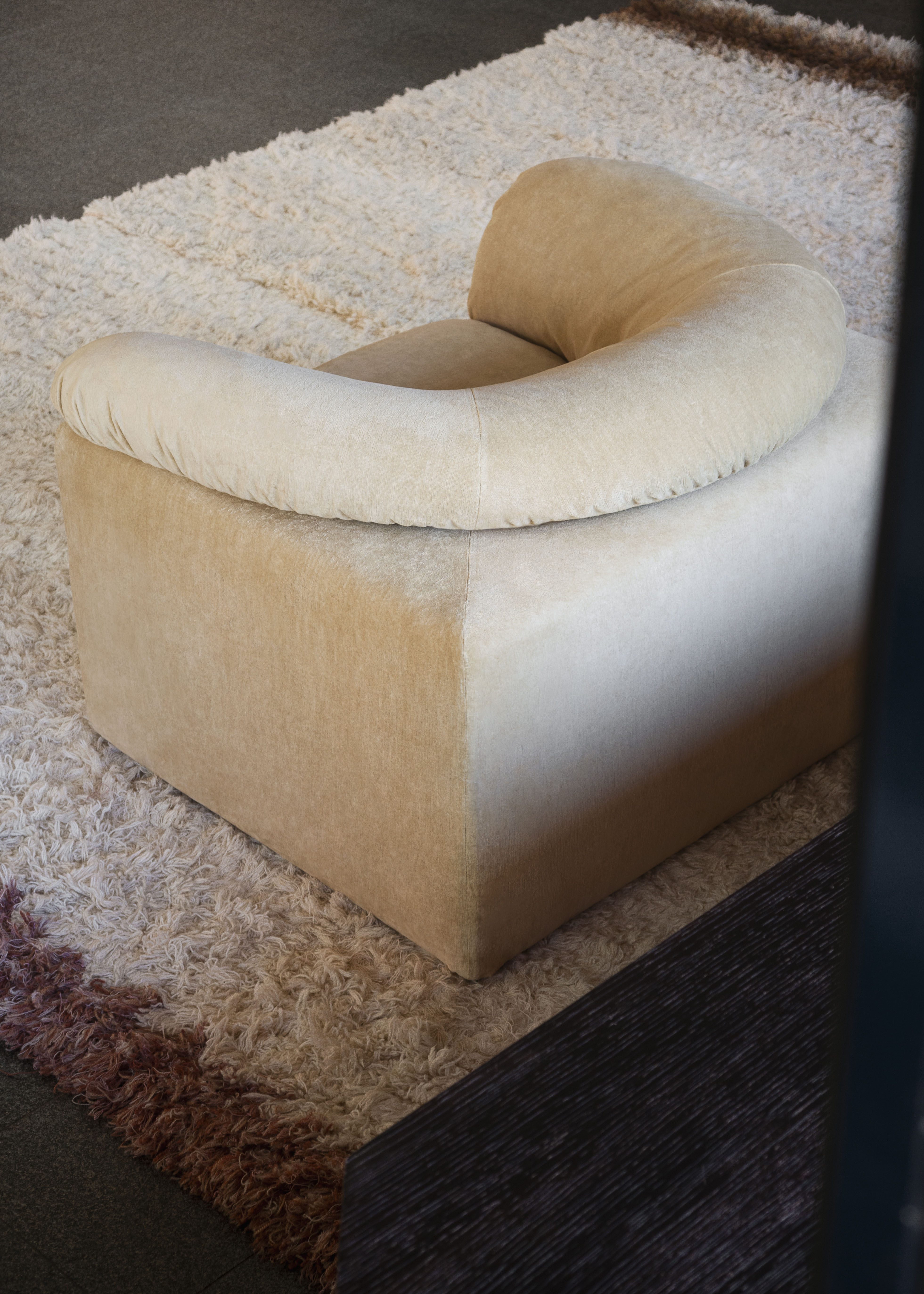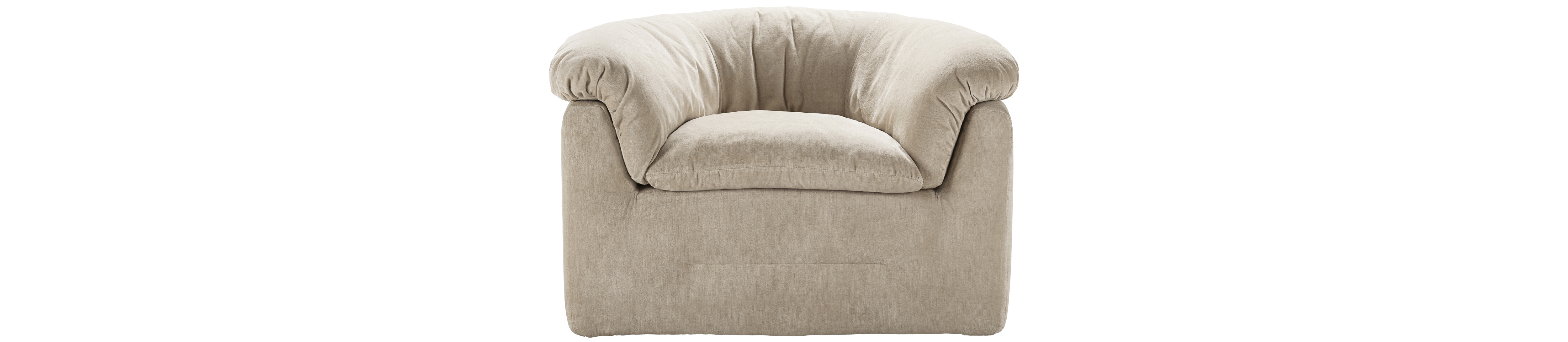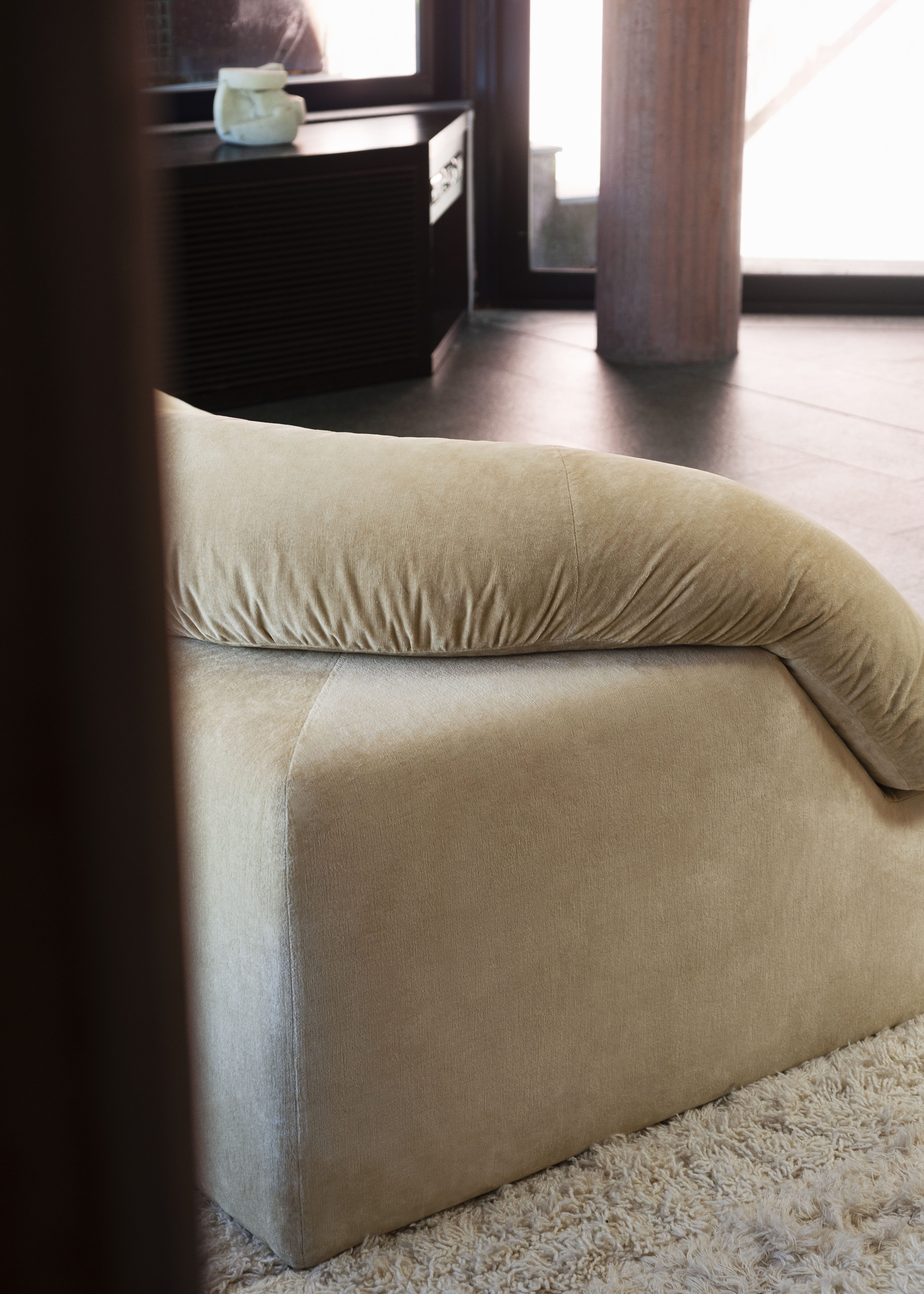 La poltrona riprende le linee soffici e scultoree del Butter Sofa, capace di seguire il corpo e i suoi movimenti in un utilizzo libero e informale. L’ampia seduta accoglie un generoso cuscino schienale che avvolge l’intera struttura e sporge lungo i bordi superiori, definendo un profilo morbido e continuo. Le cuciture laterali enfatizzano i volumi imbottiti, rendendoli pieni e bombati, per favorire relax e spontaneità nello spazio domestico.