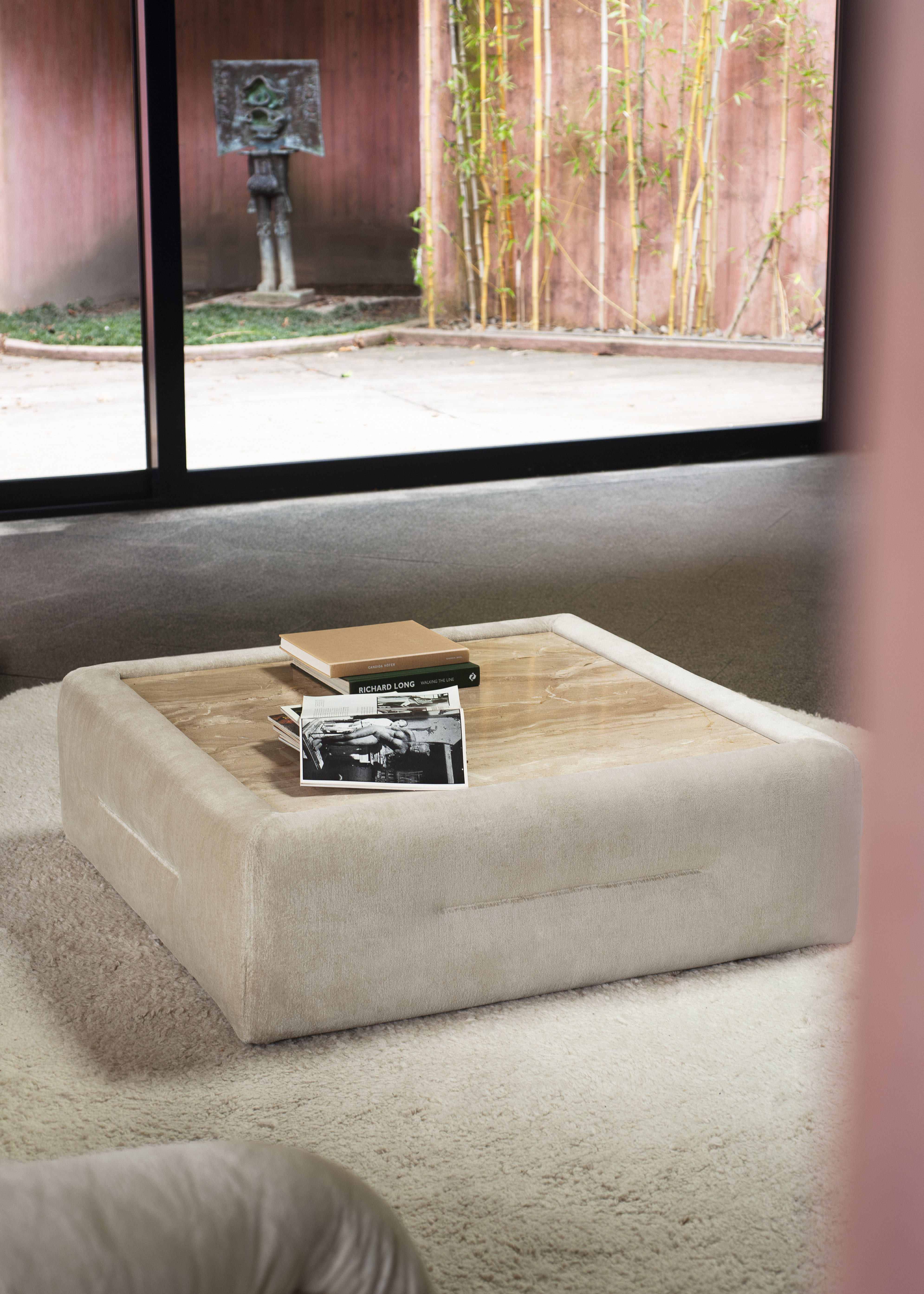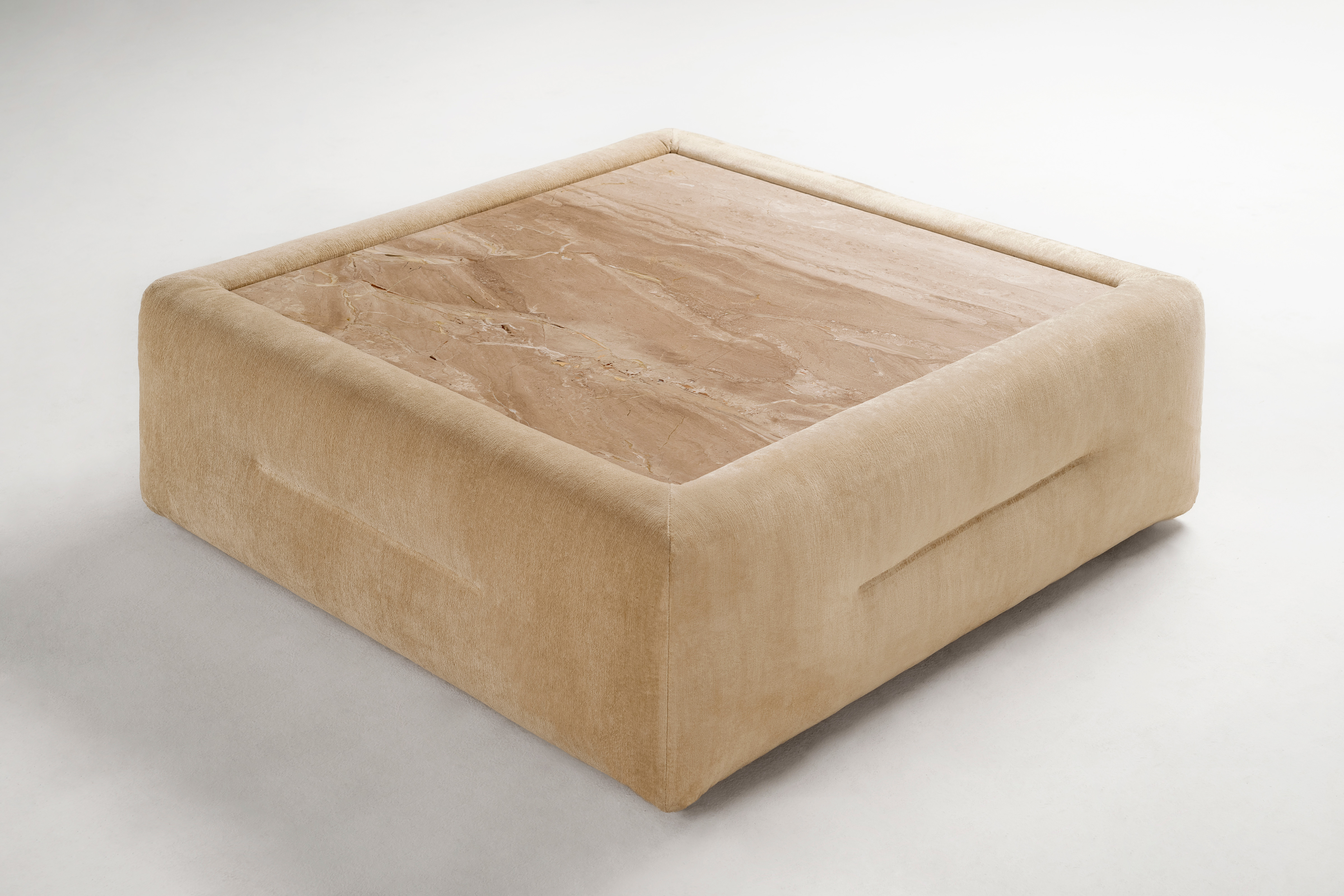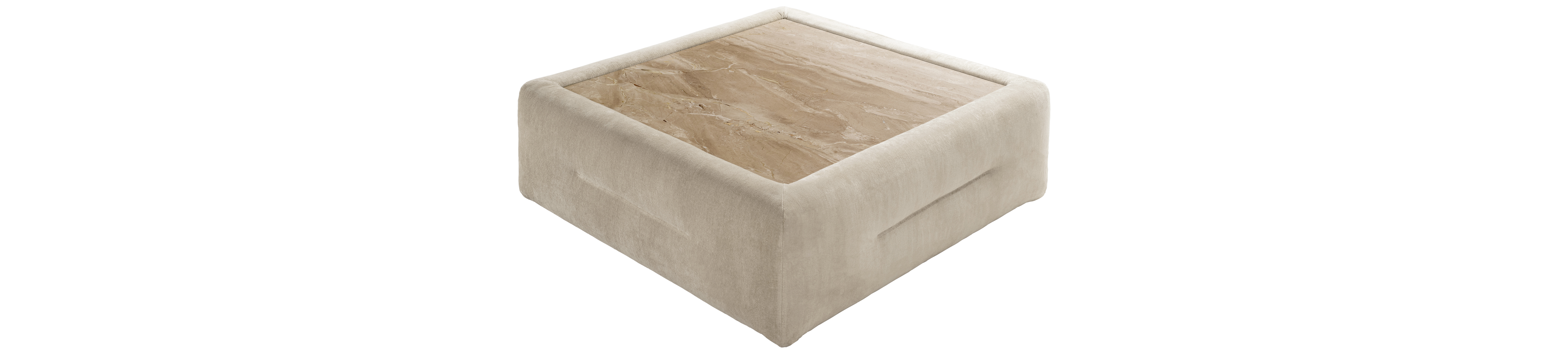 Il tavolino rafforza l’identità della collezione con nuove configurazioni dedicate al comfort e alla relazione. Disponibile nelle versioni quadrata o rettangolare, può essere utilizzato come elemento singolo o integrato nel Butter Sofa. I volumi pieni e accoglienti della base sono completati da un piano in pietra naturale che accompagna i gesti quotidiani con ancora più libertà.
