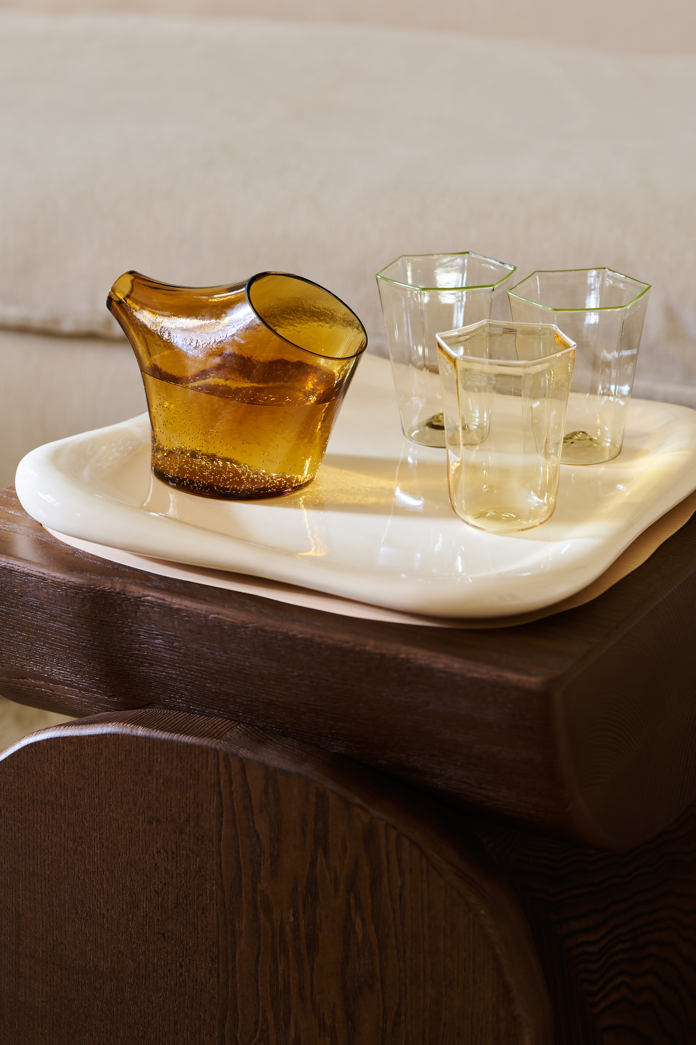 Il vassoio Butter richiama le forme morbide del Tandsmør: il burro spalmato sul pane in uno strato così spesso che i denti riescono a lasciare il segno. Fa parte della collezione Bread and Butter realizzata in collaborazione con Faye Toogood.