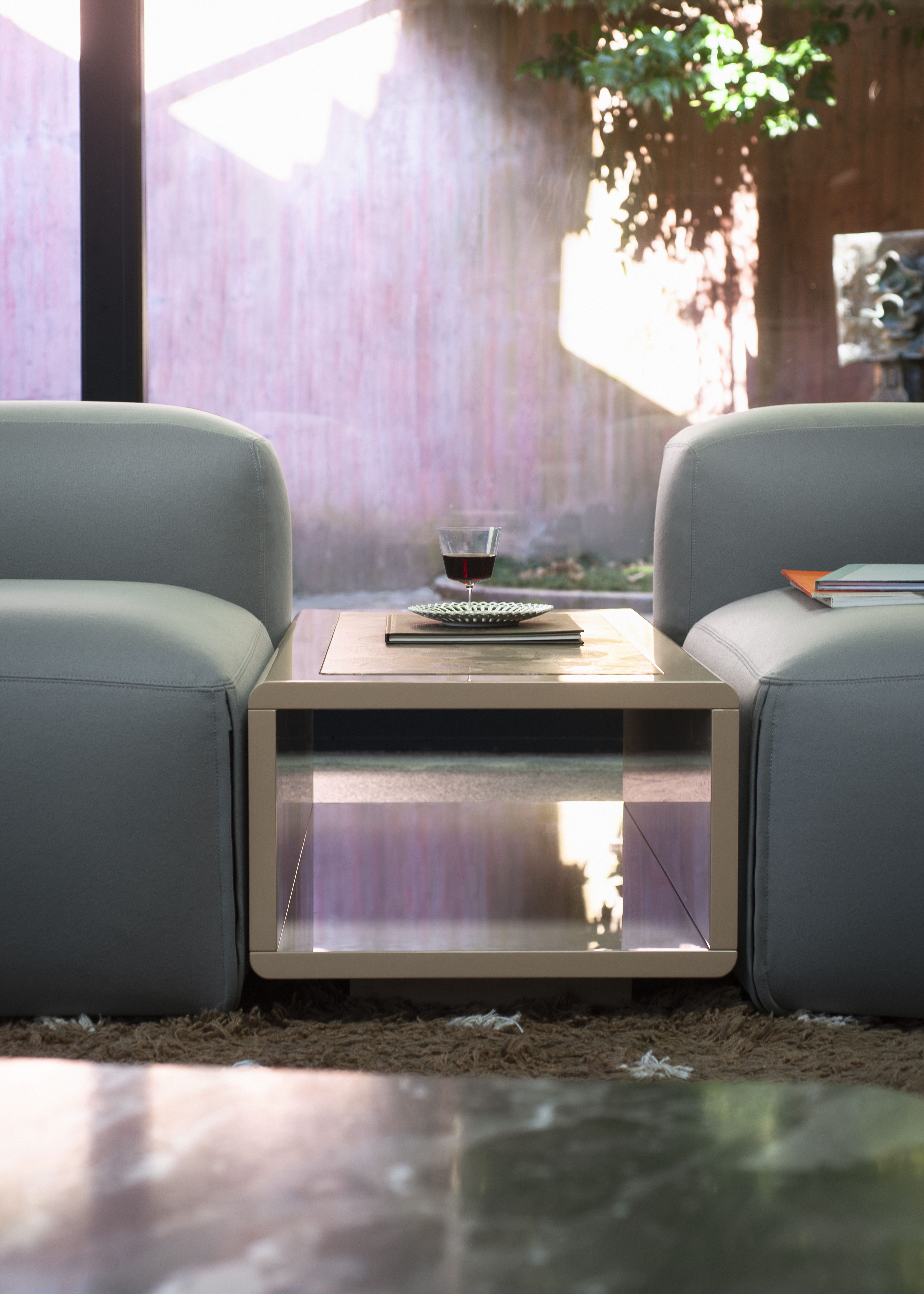 Tesis è una collezione di low tables pensata per un duplice utilizzo: può inserirsi con naturalezza tra i moduli dei sistemi di seduta o essere utilizzata liberamente come elemento autonomo. Il vano contenitore sottostante offre uno spazio aperto per accogliere piccoli oggetti, coniugando funzionalità e leggerezza visiva. Le finiture esprimono l’attenta ricerca materica di Tacchini: essenze lignee, marmi e lacche ampliano le possibilità espressive, creando inediti accostamenti tra top e struttura e con l’ambiente circostante.