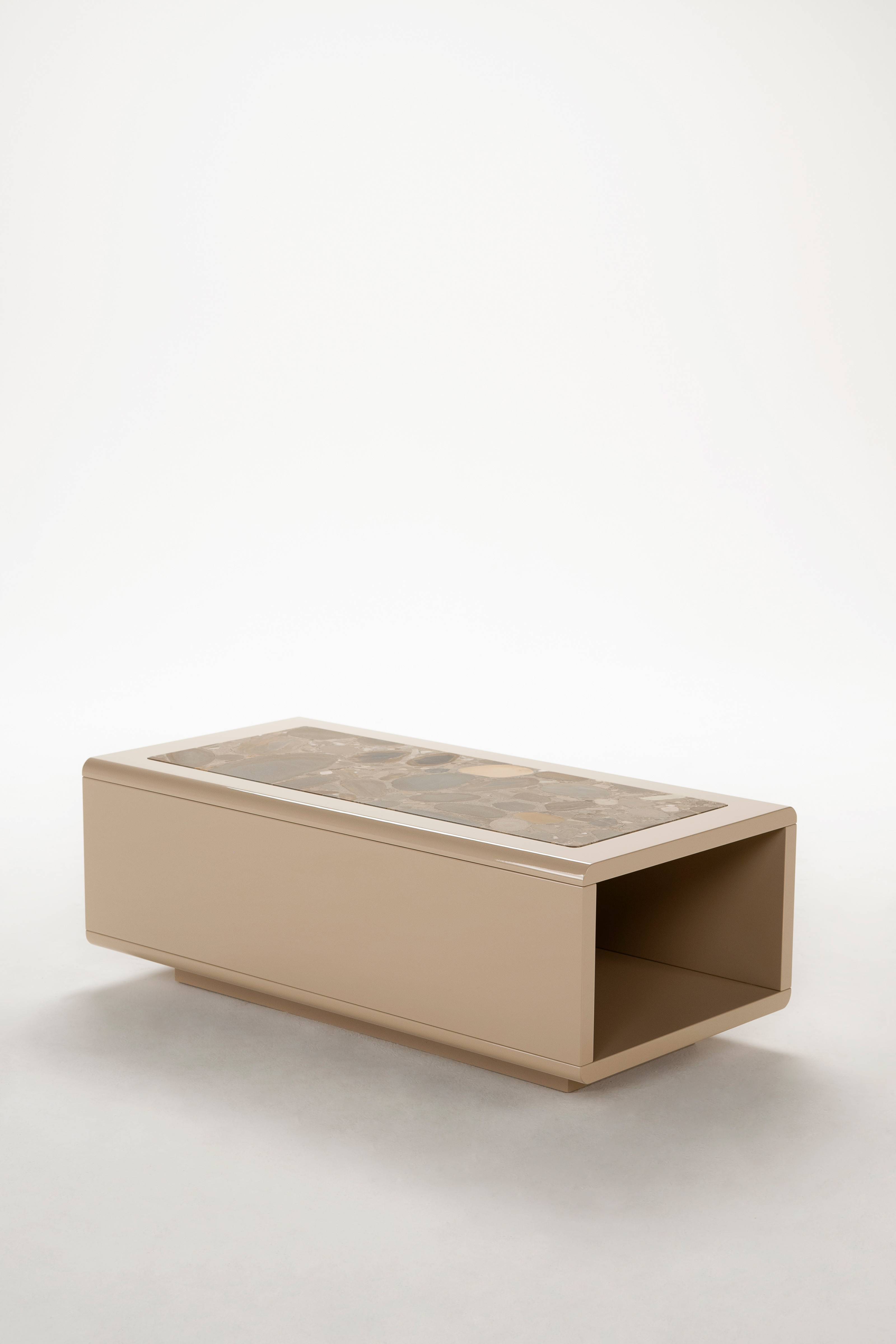 Tesis interpreta il tavolino come elemento di raccordo tra volumi e funzioni, capace di esistere anche in autonomia per accompagnare la natura fluida e versatile dell’abitare contemporaneo in diverse forme e dimensioni.