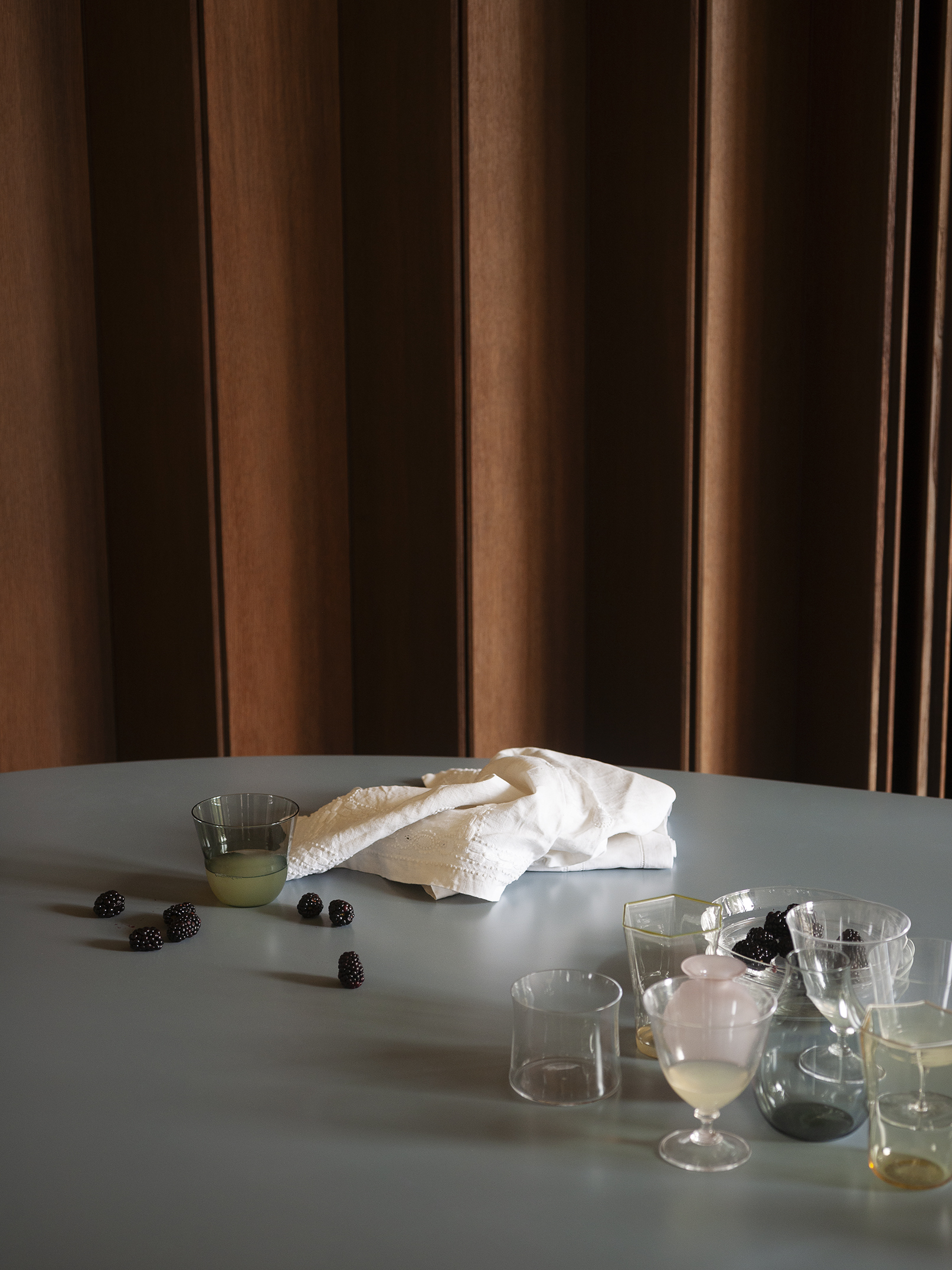 Le fotografie sono state realizzate senza illuminazione artificiale. I vincoli spaziali della casa, uniti all’atmosfera invernale, hanno generato un’ambientazione morbida, quasi crepuscolare, interpretata con sensibilità da Andrea Ferrari, il cui approccio preserva l’intensità silenziosa dello spazio.
