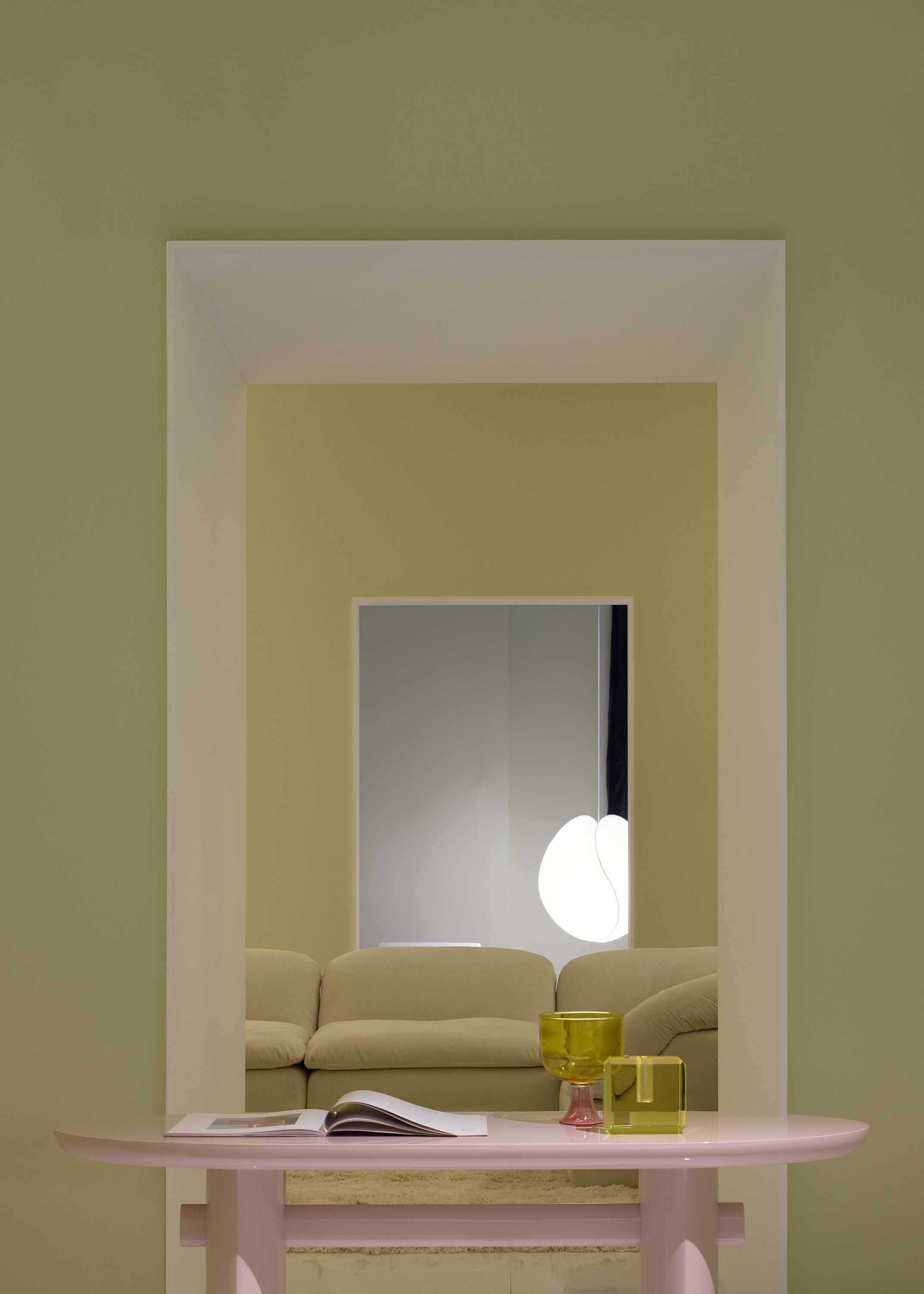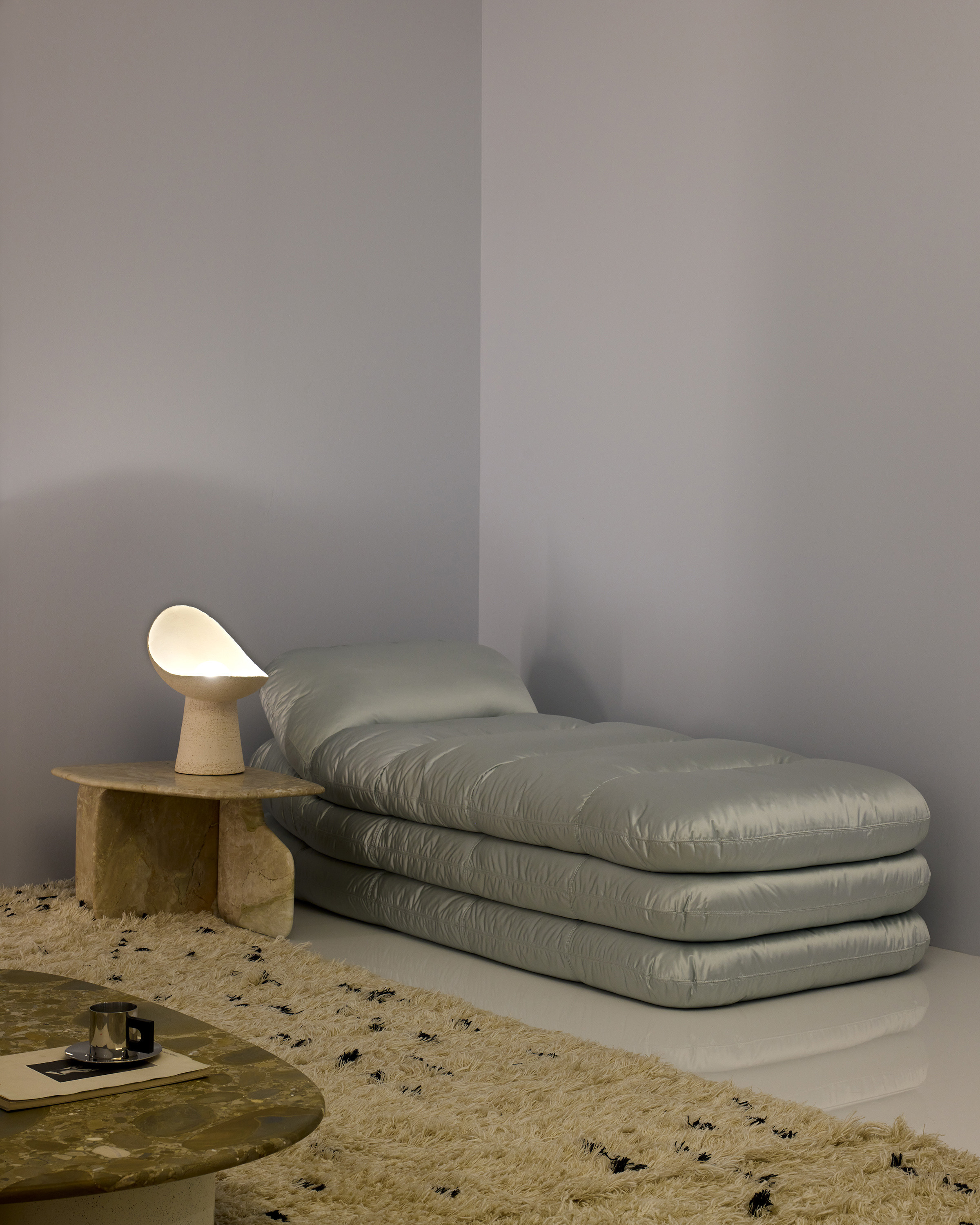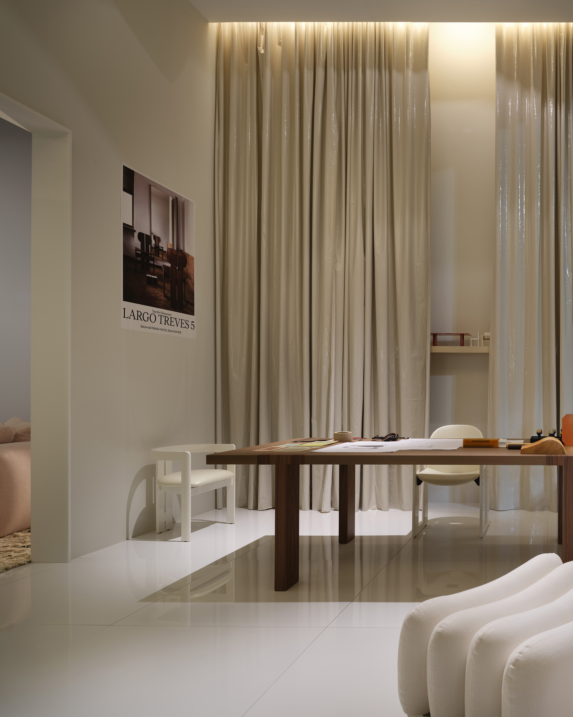 The stand, designed by Matteo Fiorini (Studio LYS) with styling by Charlotte de La Grandière, presents itself as a collection of pure volumes shaped by subtraction. Slits and openings interrupt the continuity of the surfaces, while grazing light accentuates the geometries, guiding the audience through an immersive journey. Inside, a sequence of intimate spaces evokes the closeness of the domestic dimension. A balance between rigor and softness takes shape through a neutral palette and tactile textures, enhancing the sense of calm and transforming the space into an enveloping refuge.