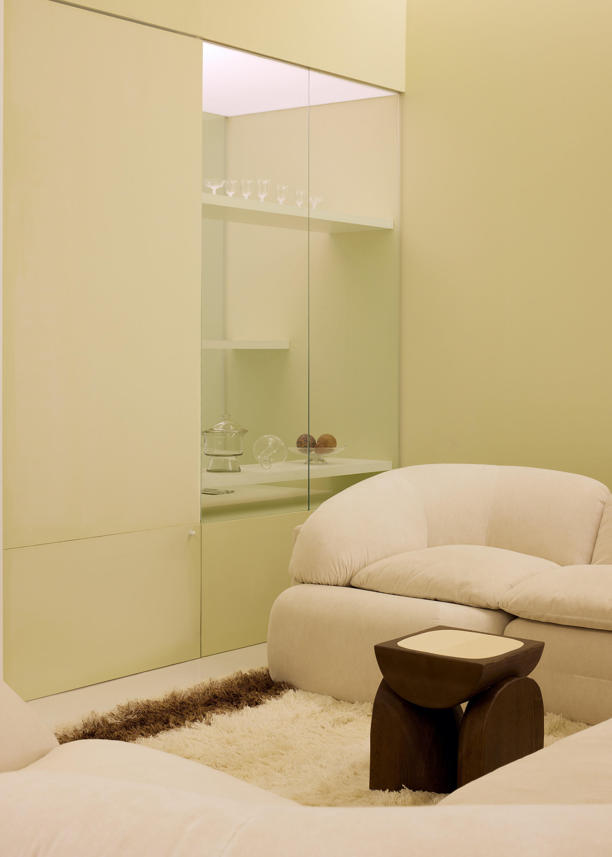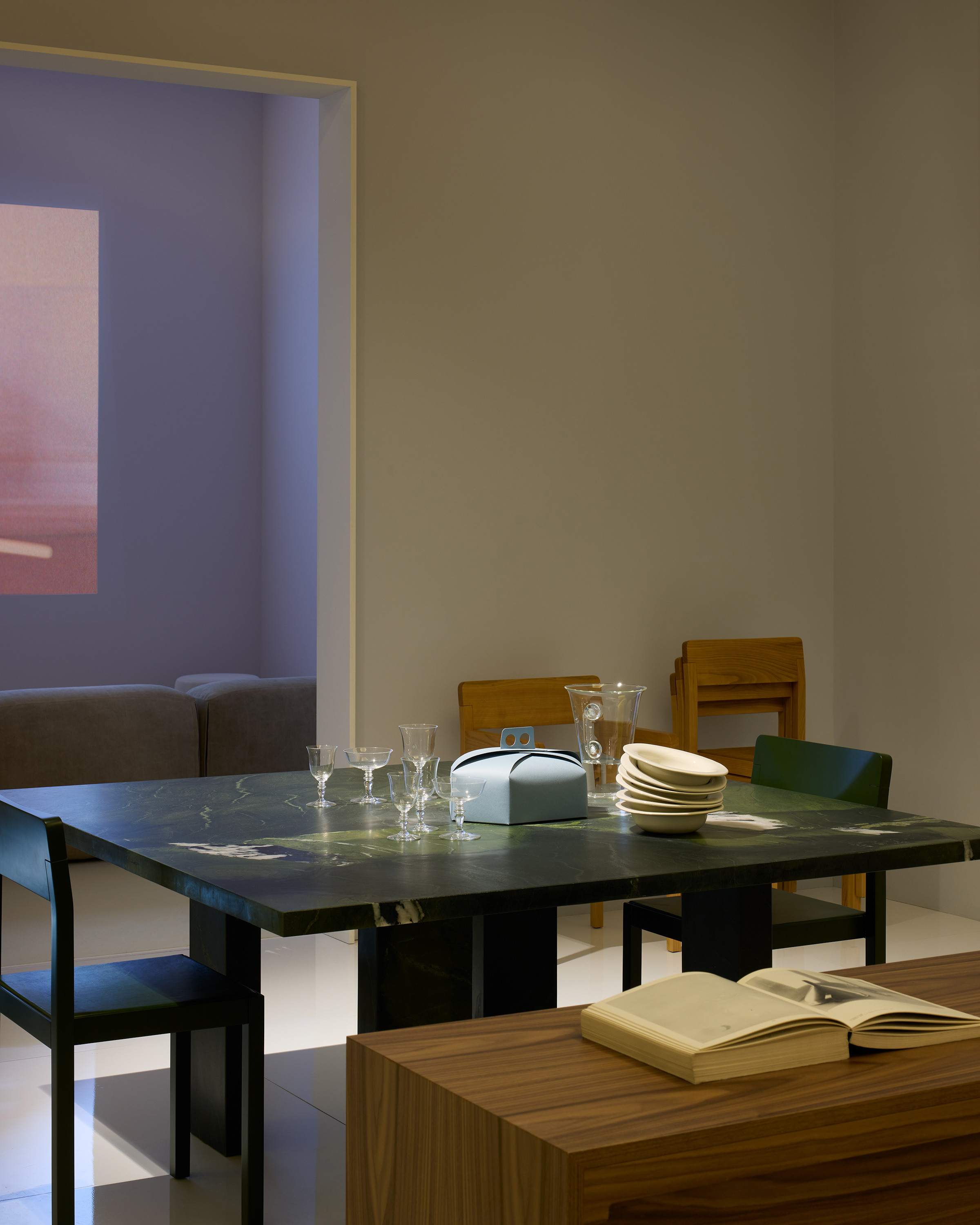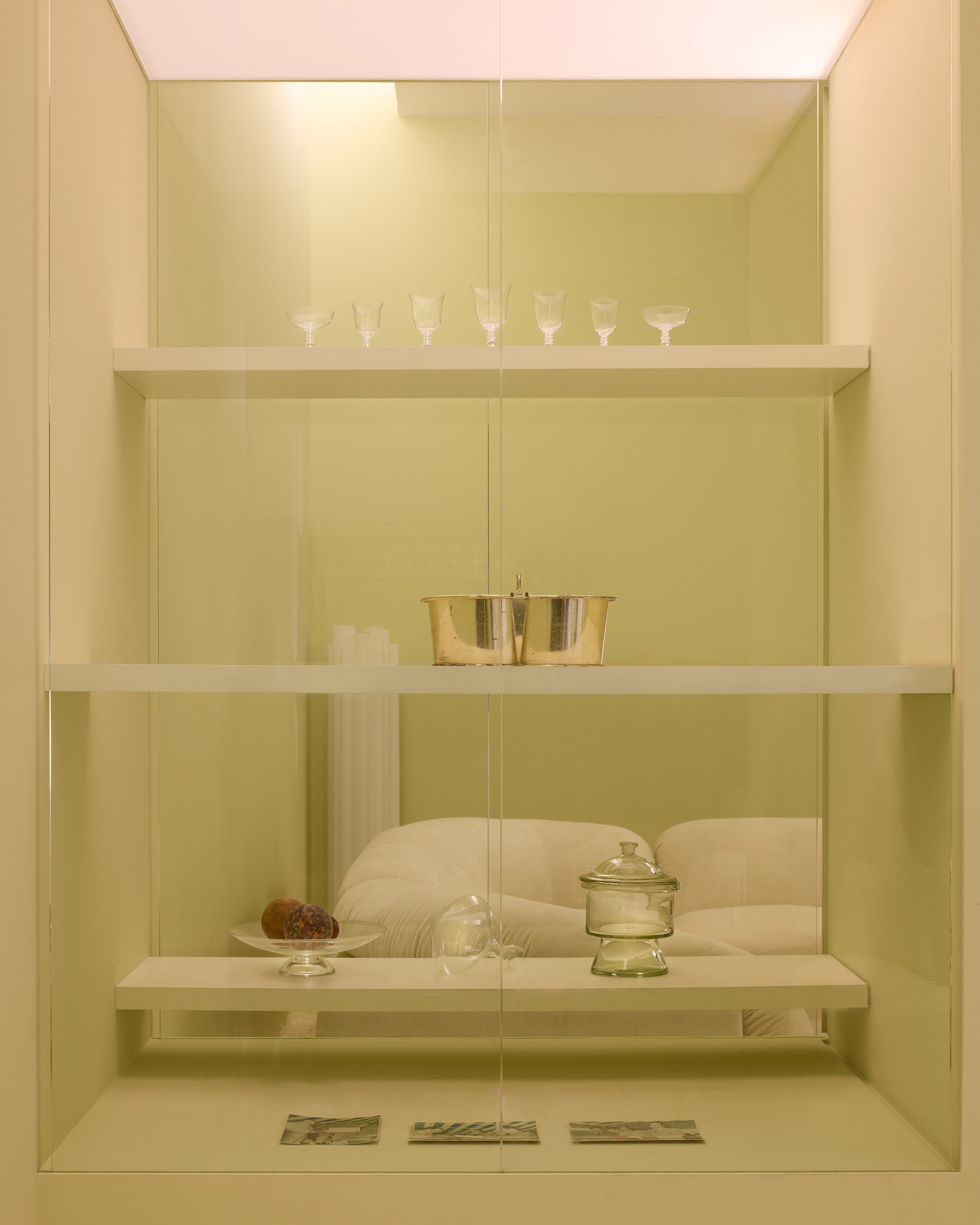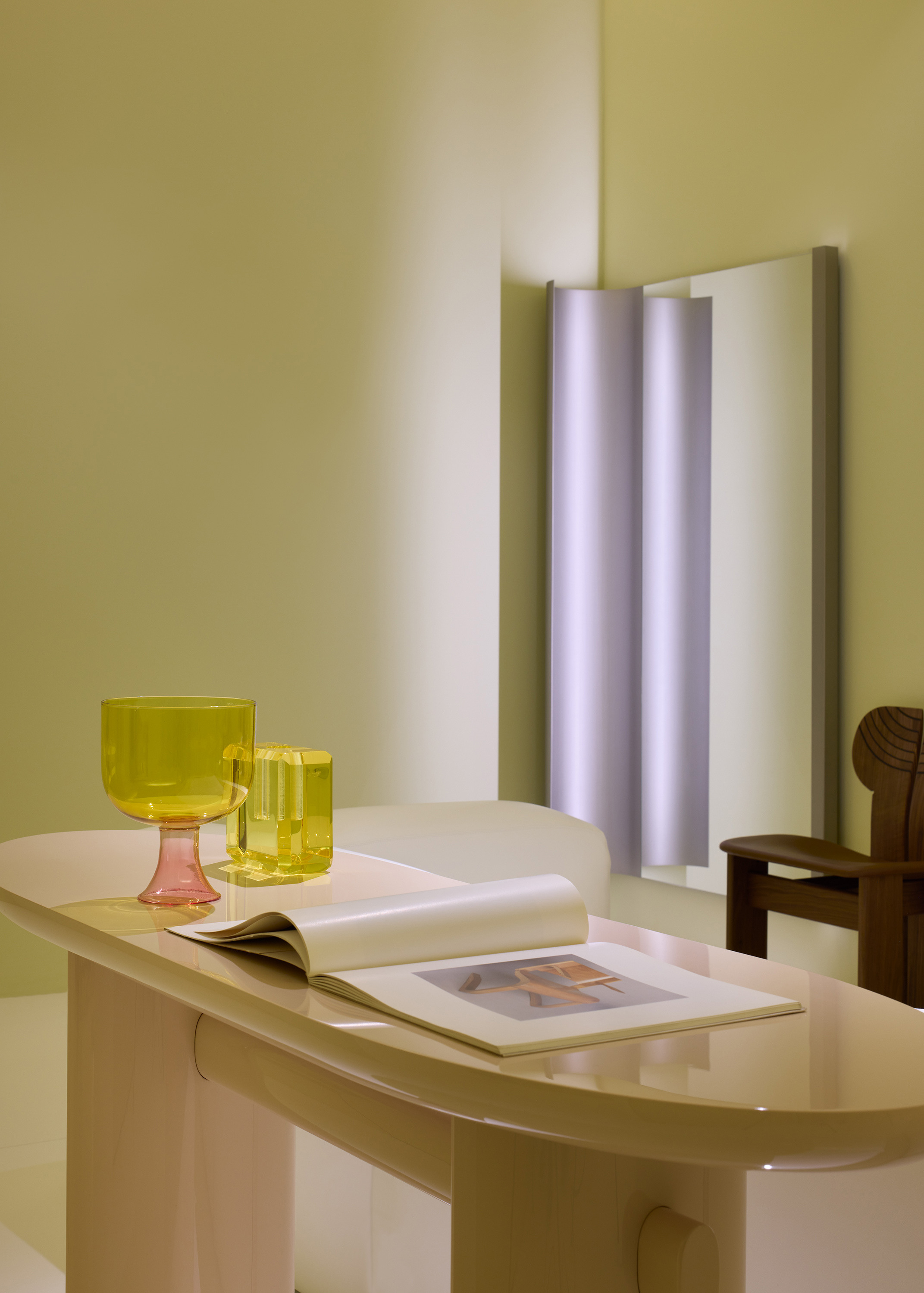 The stand, designed by Matteo Fiorini (Studio LYS) with styling by Charlotte de La Grandière, presents itself as a collection of pure volumes shaped by subtraction. Slits and openings interrupt the continuity of the surfaces, while grazing light accentuates the geometries, guiding the audience through an immersive journey. Inside, a sequence of intimate spaces evokes the closeness of the domestic dimension. A balance between rigor and softness takes shape through a neutral palette and tactile textures, enhancing the sense of calm and transforming the space into an enveloping refuge.
