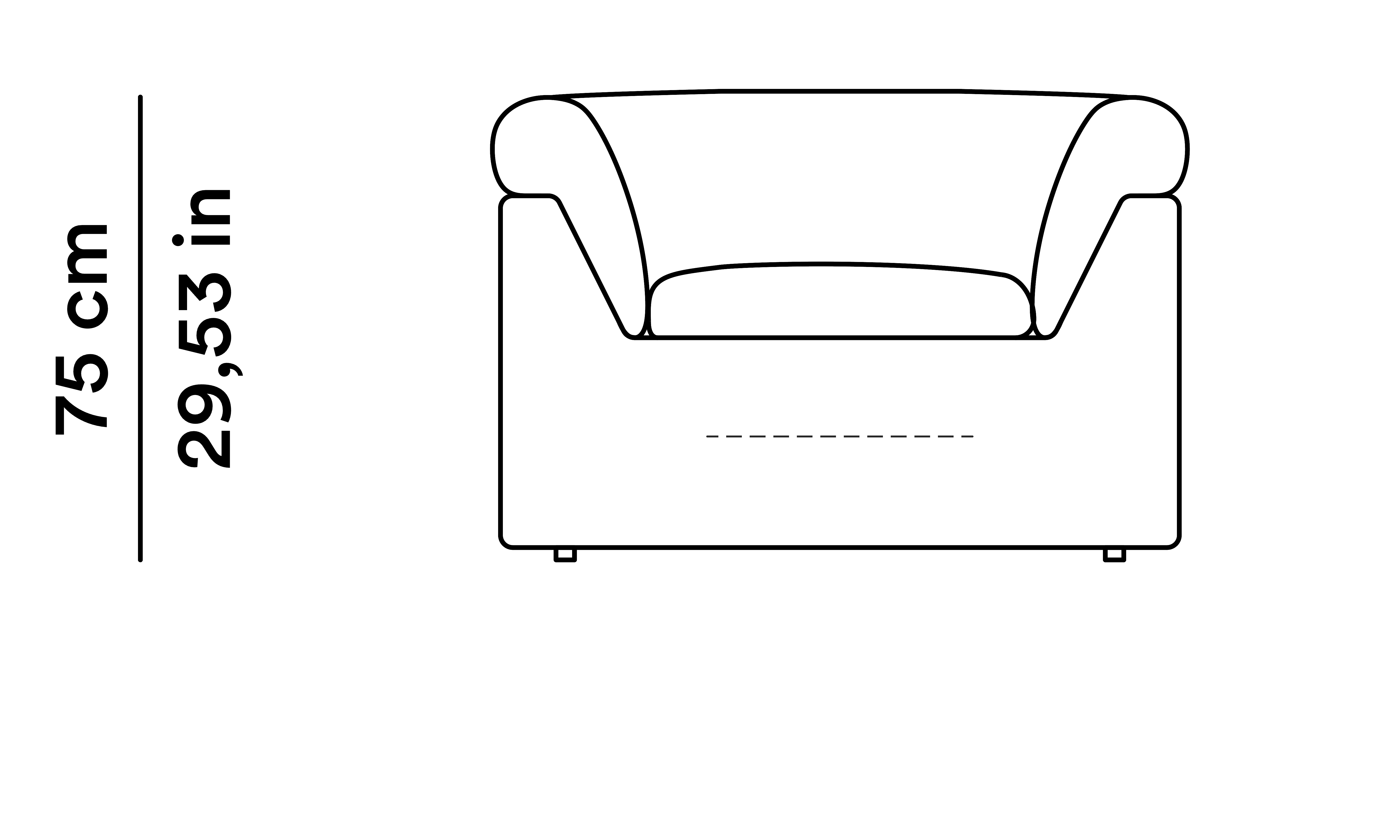 The armchair echoes the soft, sculptural lines of the Butter Sofa, following the body and its movements in a relaxed and informal way. The generous seat accommodates a substantial back cushion that wraps around the entire structure and extends along the upper edges, defining a soft and continuous profile. The side stitching emphasises the padded volumes, full and rounded, encouraging relaxation and spontaneity within the home.