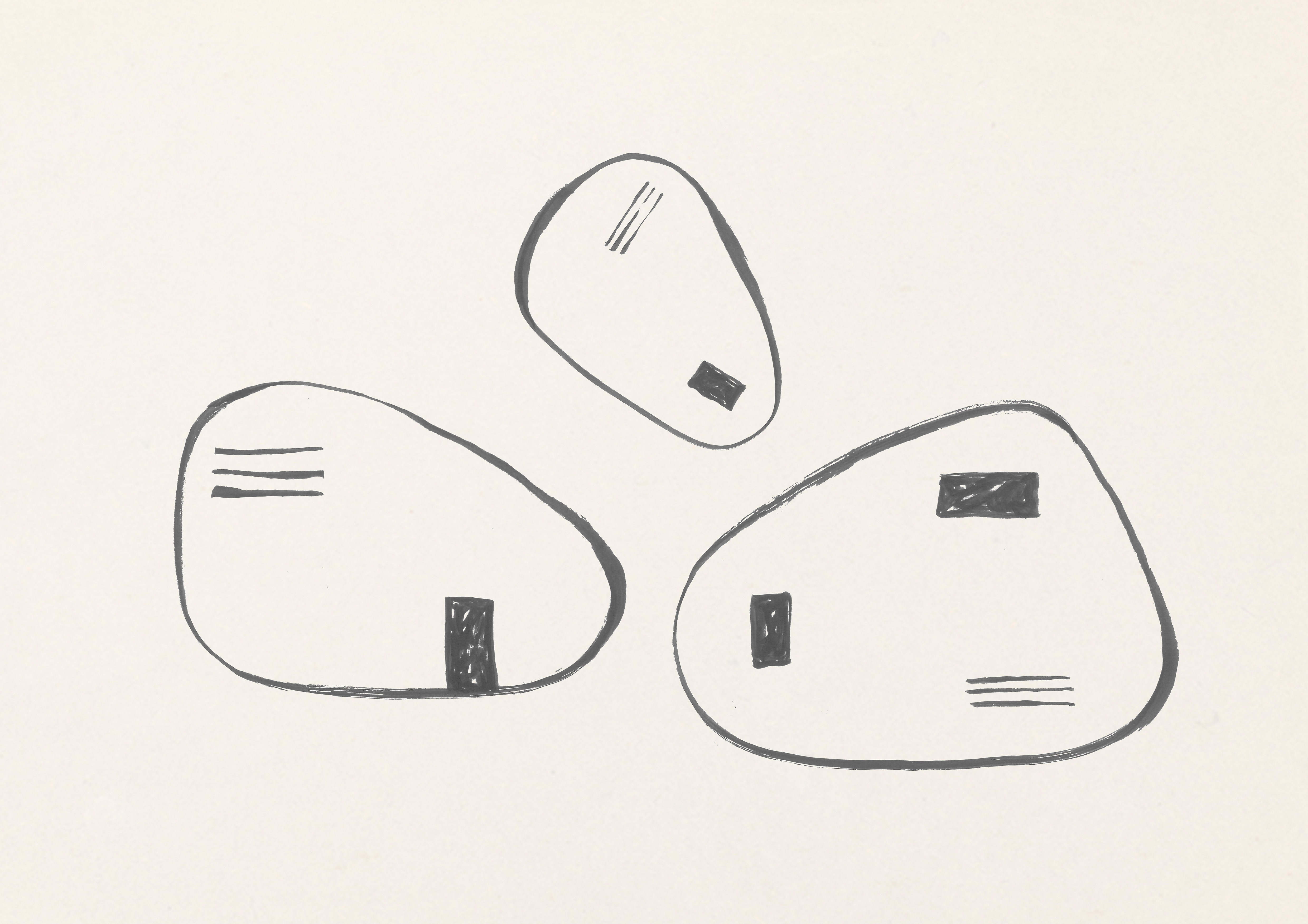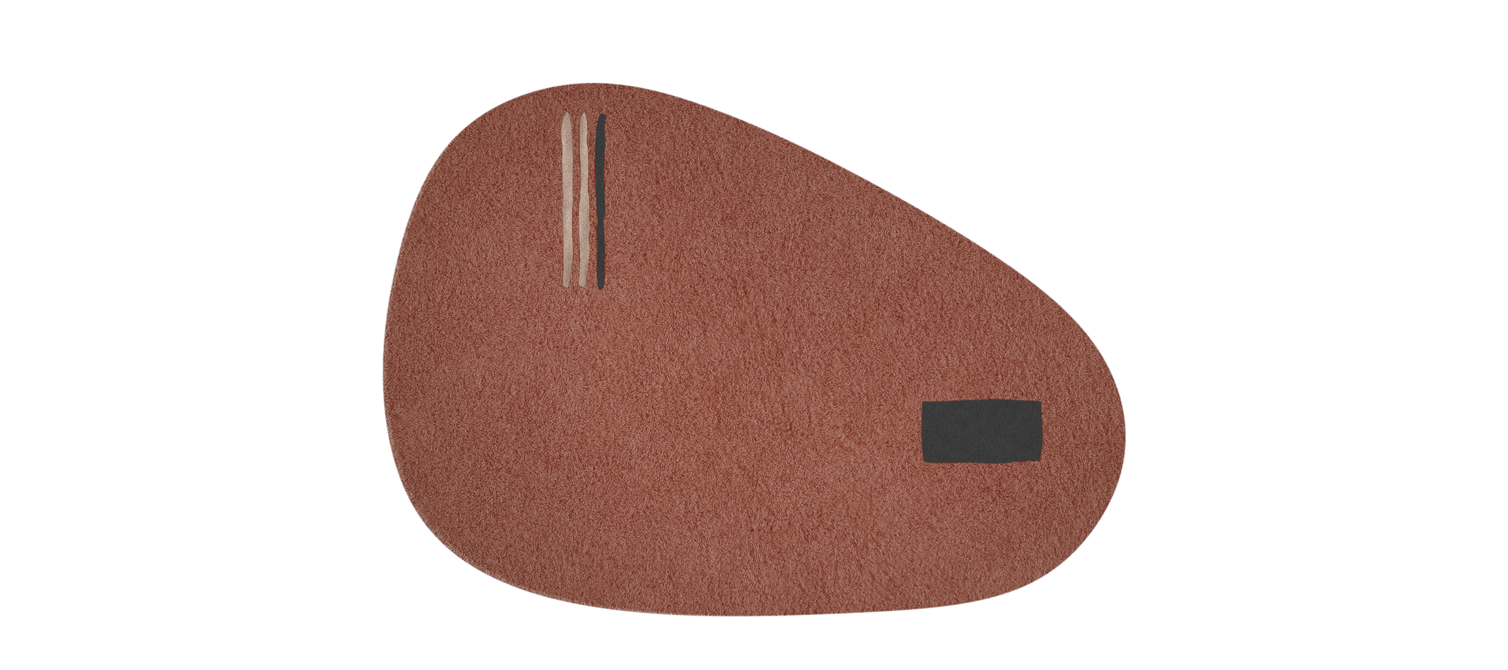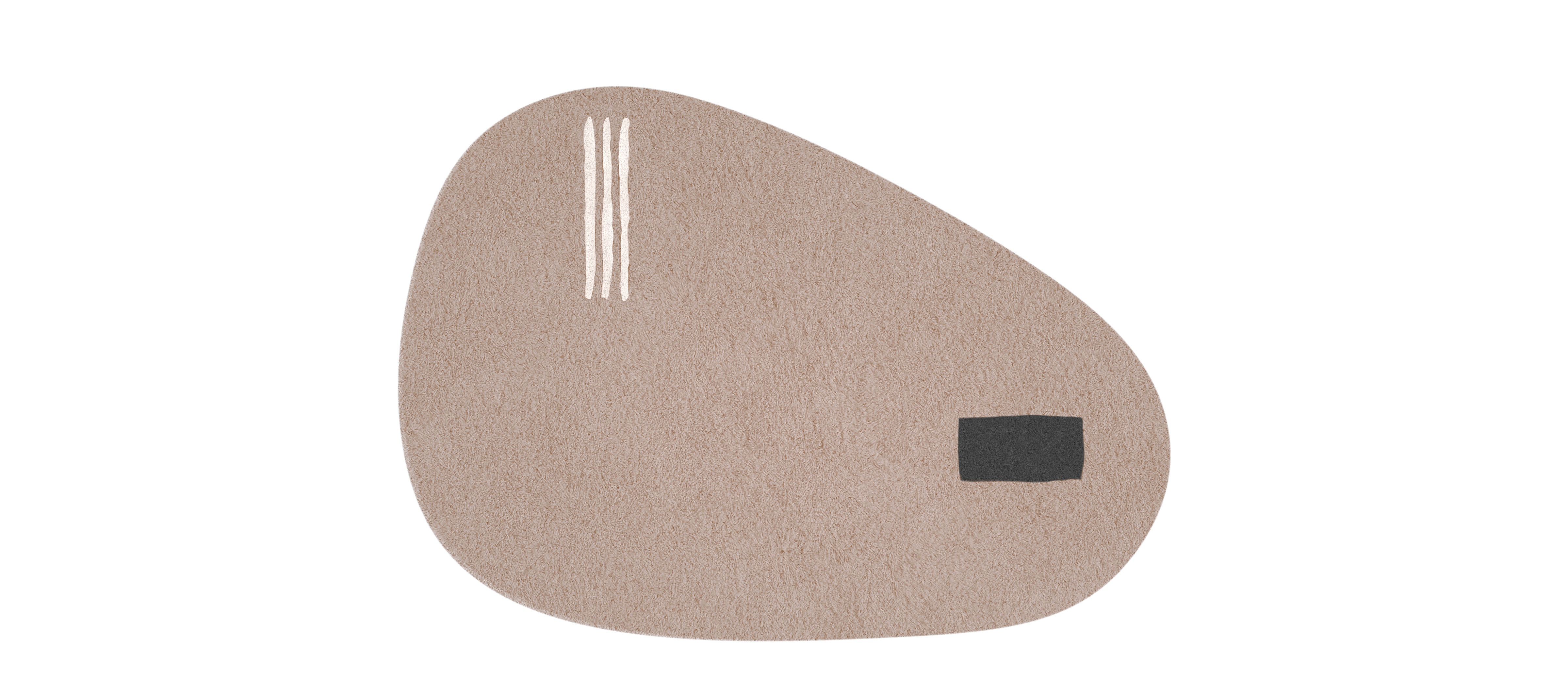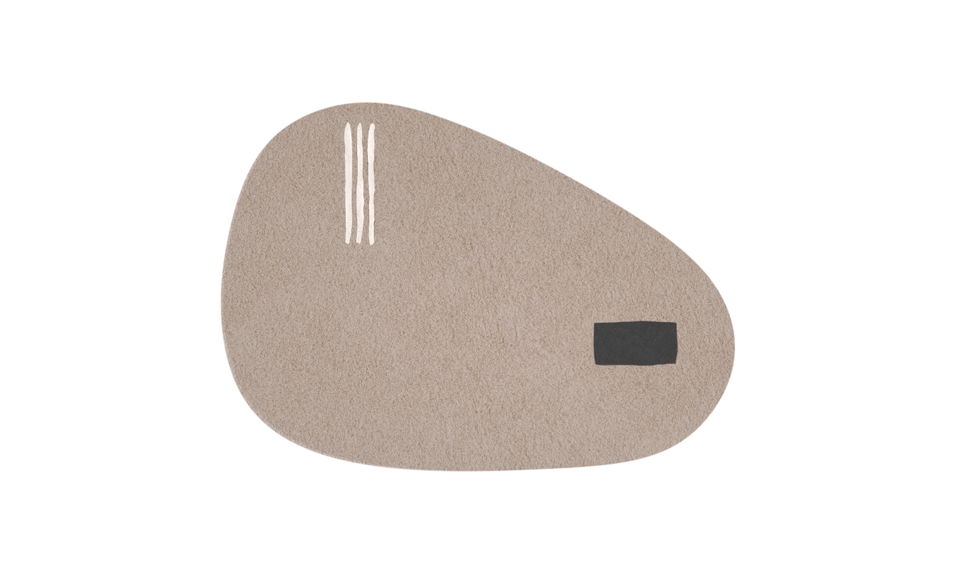 The Onigiri collection renews the collaboration with Studiopepe, combining function with visual language. Surfaces defined by organic shapes are marked by sharp, essential graphics: the design is not merely decorative, but part of a broader reflection on the sign, conceived as a measured gesture that structures space. The lines of onigiri, the iconic triangle of white rice wrapped in a rectangle of nori seaweed, become the collection’s distinctive graphic motif. Made from pure wool and available in three sizes, the rugs introduce a soft, enveloping presence into the space.